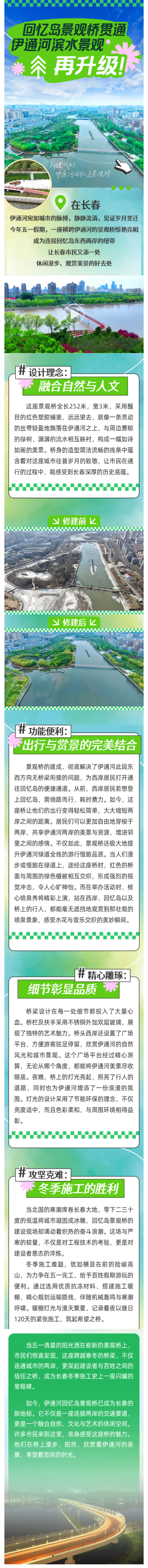 回忆岛景观桥贯通,伊通河滨水景观再升级