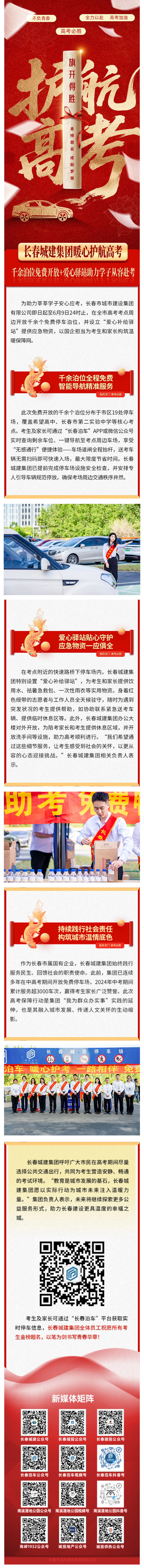 长春城建集团暖心护航高考 近千泊位免费开放+爱心驿站助力学子从容赴考
