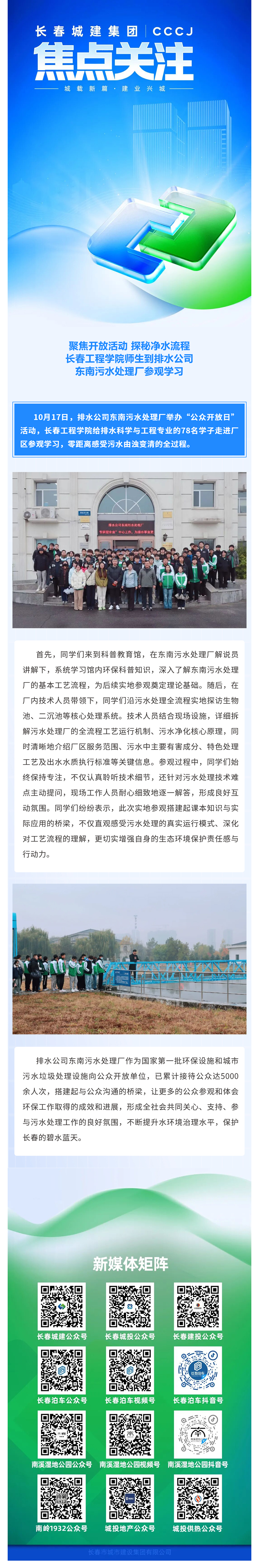 聚焦开放活动 探秘净水流程 长春工程学院师生到排水公司东南污水处理厂参观学习